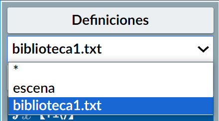 Definiciones.Sí ya se cuenta con una escena cuyas definiciones se quieren usar como biblioteca, se puede usar la opción para exportar la escena actual como biblioteca.