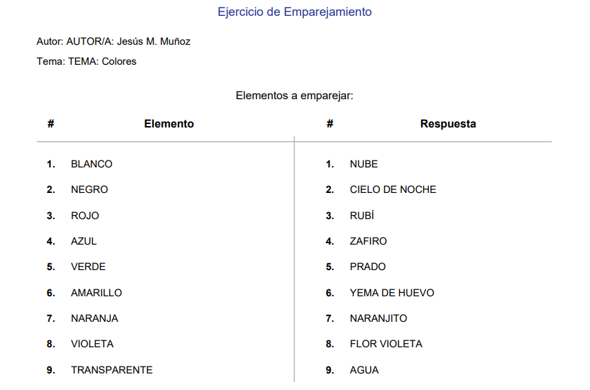A continuación, presentamos un ejemplo de conversión de archivos del tipo 16, diseñado para emparejar dos columnas de 10 elementos cada una. El proceso comienza con un archivo en formato TXT, que luego es convertido al formato GIFT.